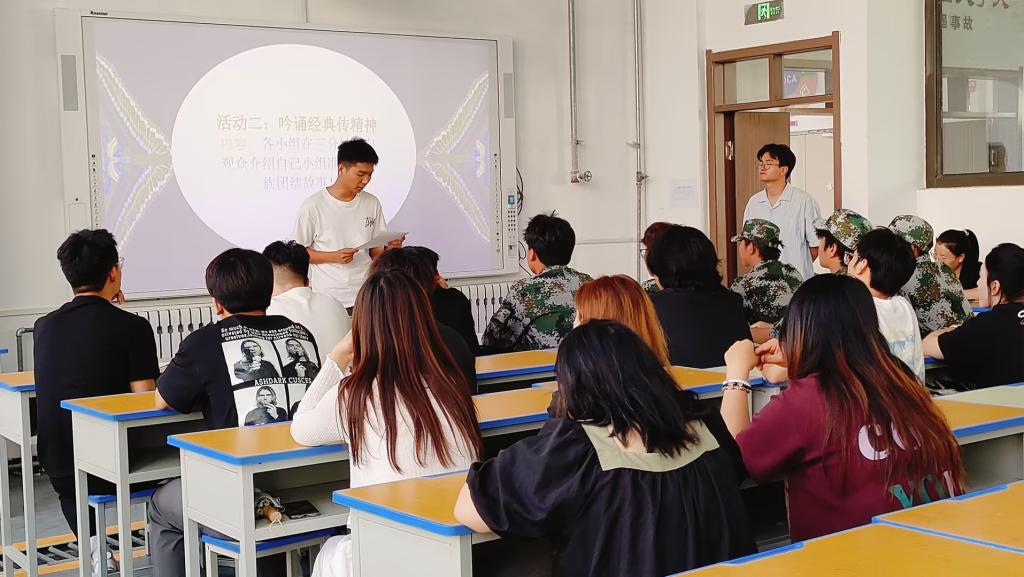 活动共分为“眼疾手快辨真假”“吟诵经典传精神”“心照不宣共接力”三个环节,共六个小组参与。活动的第一个环节让学生了解到各民族的特色服饰和食物,促进了各族学生的人文交融;活动的第二个环节是让各个小组讲述民族团结故事,让学生理解民族团结的精神内涵及践行成果。活动的第三个环节是让学生进行颠球接力,让学生体验到团队成员紧密配合的成就感和合作的重要性。