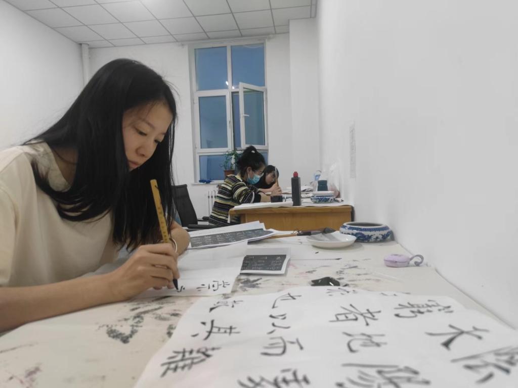 4月21日夜,beat365官方网站技能训练中心“三省堂”书画工作室依然亮着灯,四尺斗方的宣纸铺满桌面,教育艺术系教师还在带领即将参加“兵团职业院校传承中华优秀传统文化素养大赛”美术方向的3名学生,做最后的冲刺准备。