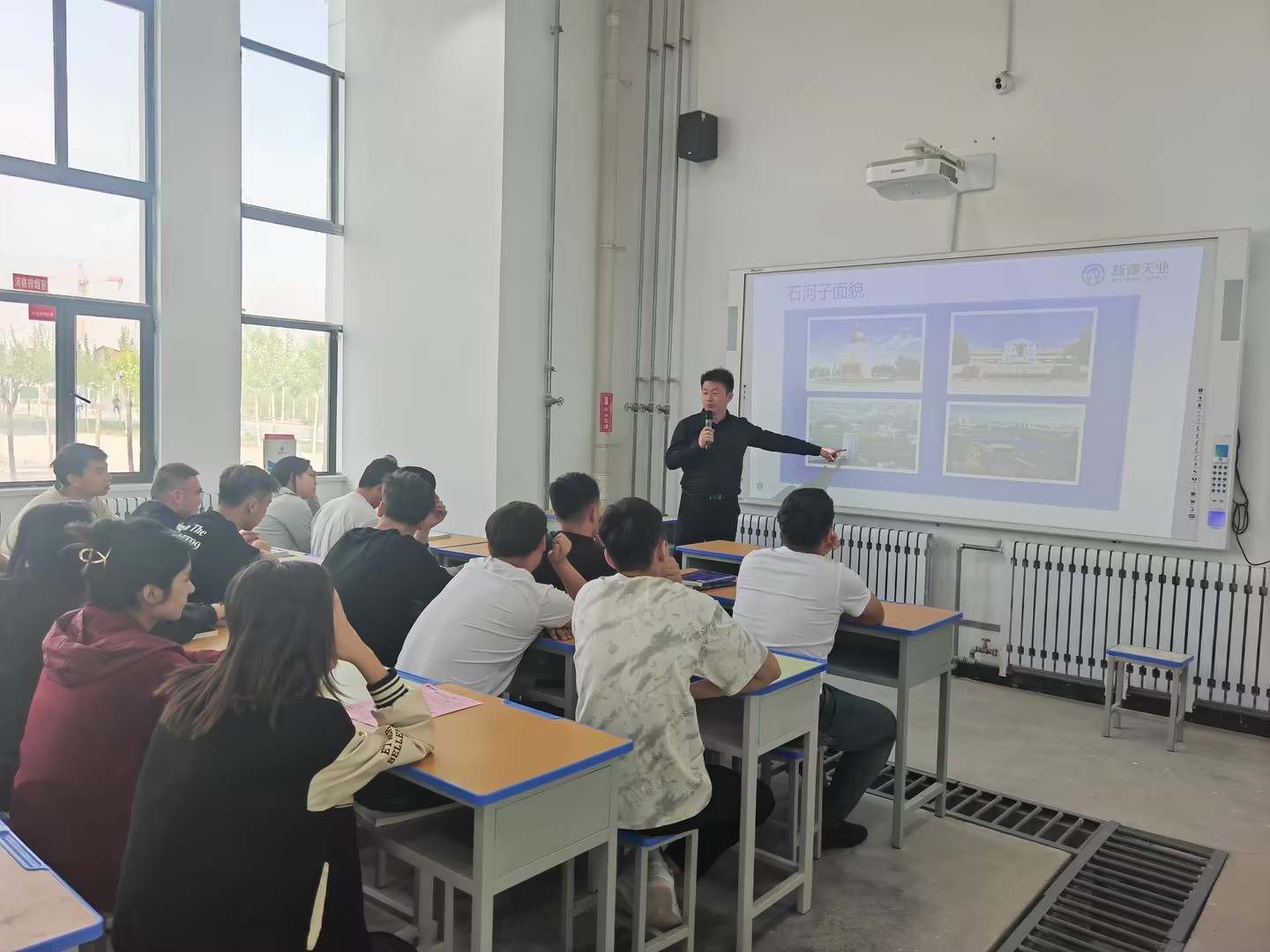 4月27日下午,疆内知名企业新疆天业集团有限公司和陕西绿能能源集团有限公司走进beat365官方网站,为化学工程系与机械工程系即将走向实习岗位的400余名学生们带来了一场招聘宣讲会,旨在搭建企业与学生之间的桥梁,为即将步入社会的学子们提供就业指导和机会。