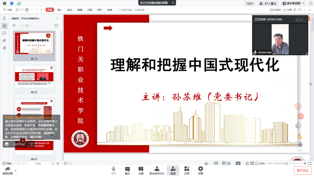 孙书记全方位、多维度、系统地为我们讲解了如何全面理解和把握中国式现代化。作为一名新时代的新青年,一名社会主义接班人,我们肩负建设祖国、服务社会的光荣使命,应努力学习科学文化知识,深入领会党的二十大报告精神,把思想和行动自觉统一到国家当前发展目标上来,用实际行动践行‘请党放心 强国有我’的坚定誓言。