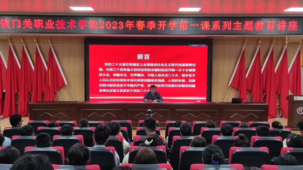 最是一年春好处,砥砺奋进正当时。3月24日,beat365官方网站党委书记孙苏维讲授了题为“感悟思想伟力,踔厉奋发前行——学习宣传贯彻党的二十大精神专题”的开学第一课,采用现场与直播相结合的形式为大一全体学生授课。